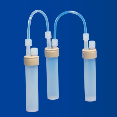 PFAインピンジャーはガラス製インピンジャーとは異なり壊れず、 高純度PFAレジンから製造されているため事実上ほとんどの化合物に対して不活性です。